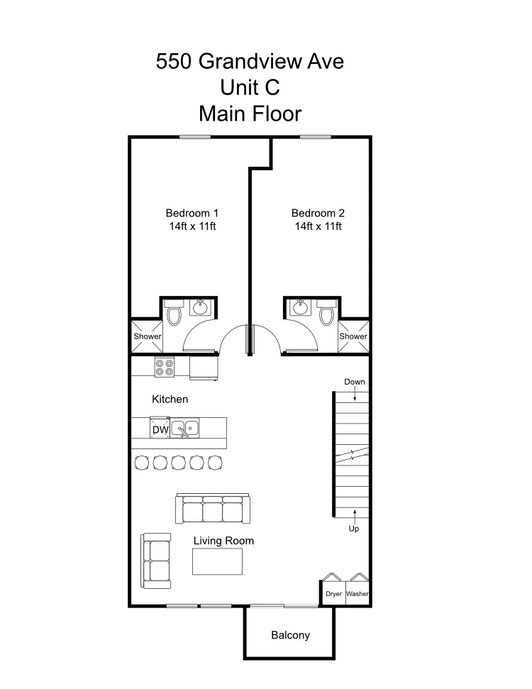 Everyone has their own bedroom, which are huge. Everyone gets their own bath – no more sharing a sink! Large kitchen with a breakfast bar overlooking the living room. Fully furnished. That means 2 couches, flat screen TV and all the rest. Washer, dryer, dishwasher, & central air are all included. We’re telling you, this house has everything. B&L townhouses are the best, that’s why they don’t last long. Set up your appointment today to check it out.